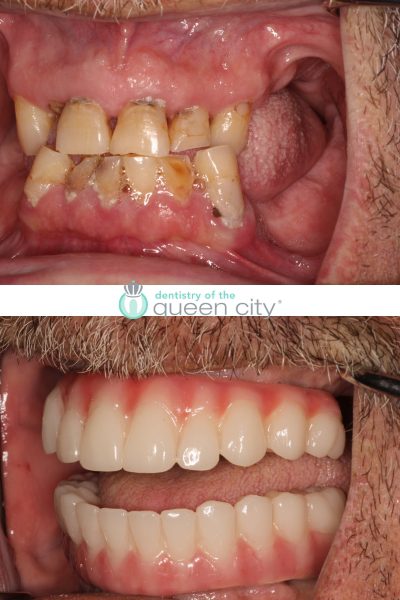 With the use of implants to hold his upper and lower prosthetics in place, and the smile design principles we implemented we were able to deliver an exceptional result that both the patient and I were extremely proud of.